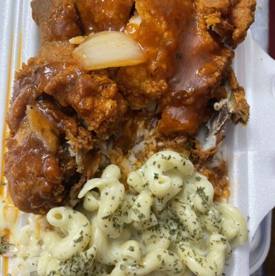 A classic comfort food, fried chicken is coated in a seasoned batter and deep-fried until crispy and golden brown. It’s juicy on the inside and crunchy on the outside.